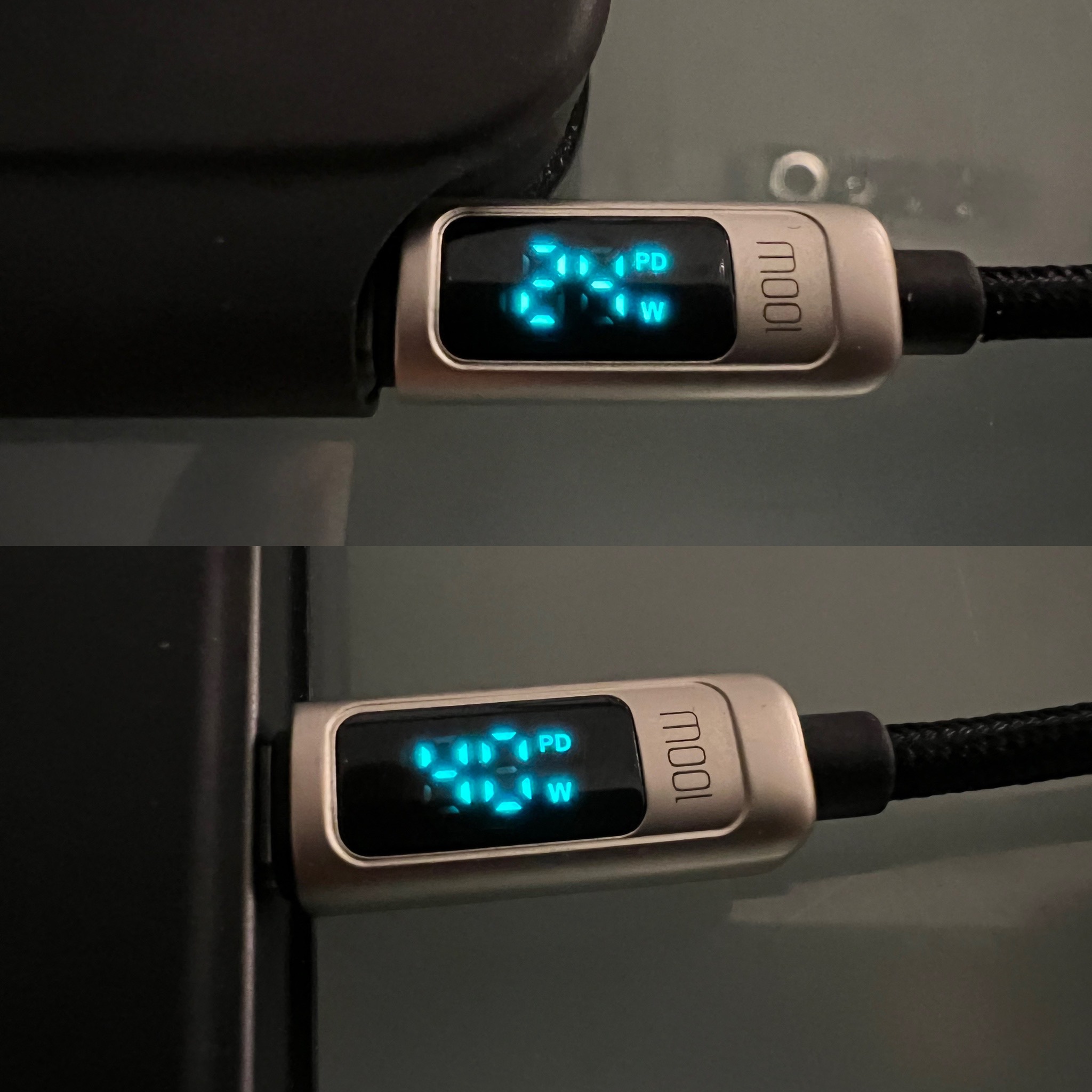 What makes this cable insanely great is the display with tells you how much juice is actually flowing through the cable. When you charge an iPad Pro with a 65W USB PD charger, it will pull 40 W through the Thunderbolt port, but only 24 W through the Magic Keyboard port. If you need to quickly charge your iPad Pro, always go through the main port, not the auxiliary charging port on the keyboard.