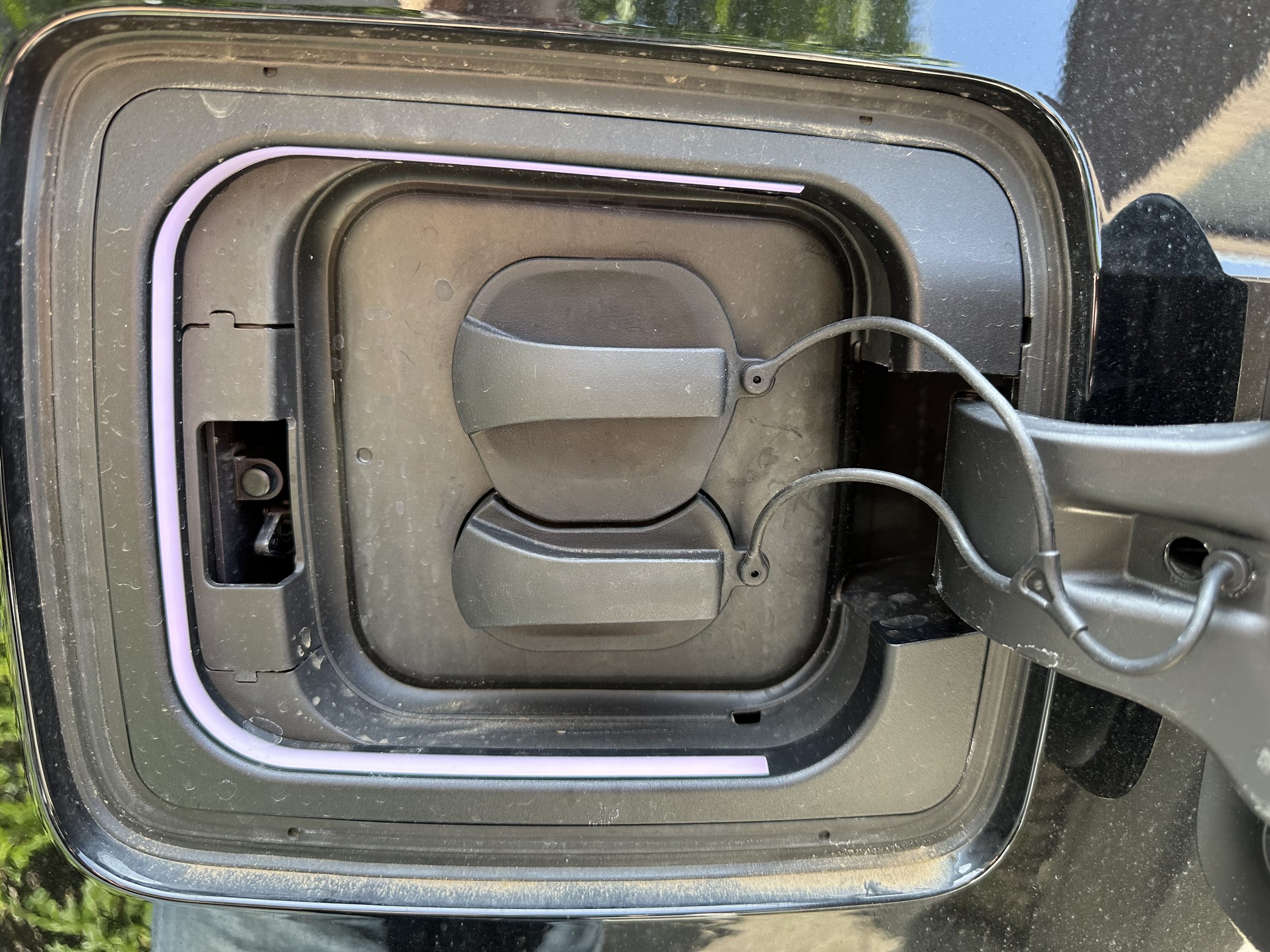 Aber es ist nicht perfekt. So finde ich diese Abdeckungen für die beiden Ladeports zu “billig”. Man kann diese beiden Pömpel zwar an einen Haken in der Ladeklappe einhängen, aber das bleibt ein Gefummel. Nun habe ich das durch eine andere Lösung ersetzt, die so aussieht:
