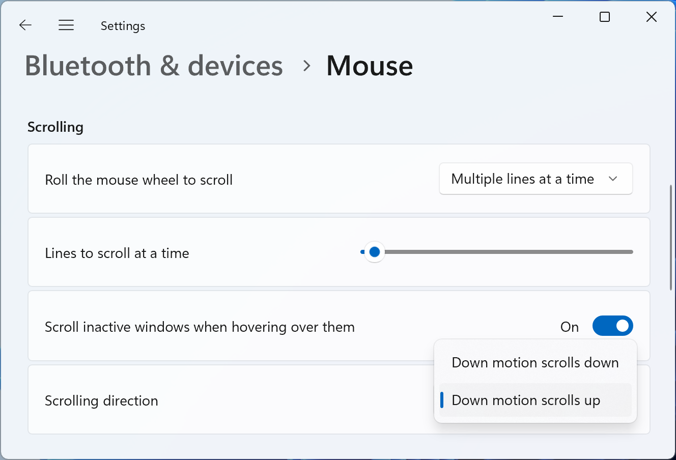 I have been complaining to Microsoft about a missing UI switch, which lets me change the mouse wheel scroll direction without installing a Logitech app or going into the registry. It’s finally here. Halleluja.