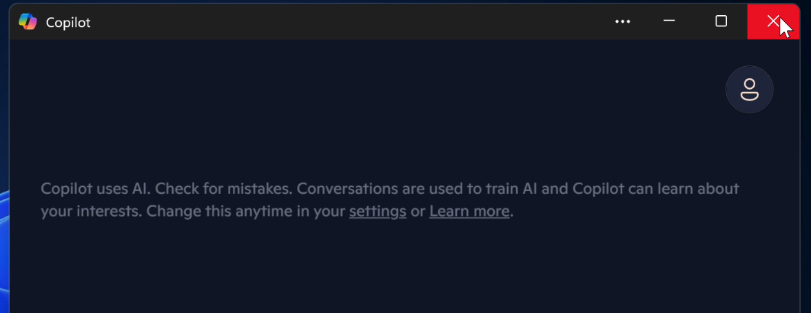 This was difficult to capture. Copilot was updated today through the Microsoft Store and now displays a message for a split second. Copilot stores our conversation to train its AI model and to “learn about my interests”.