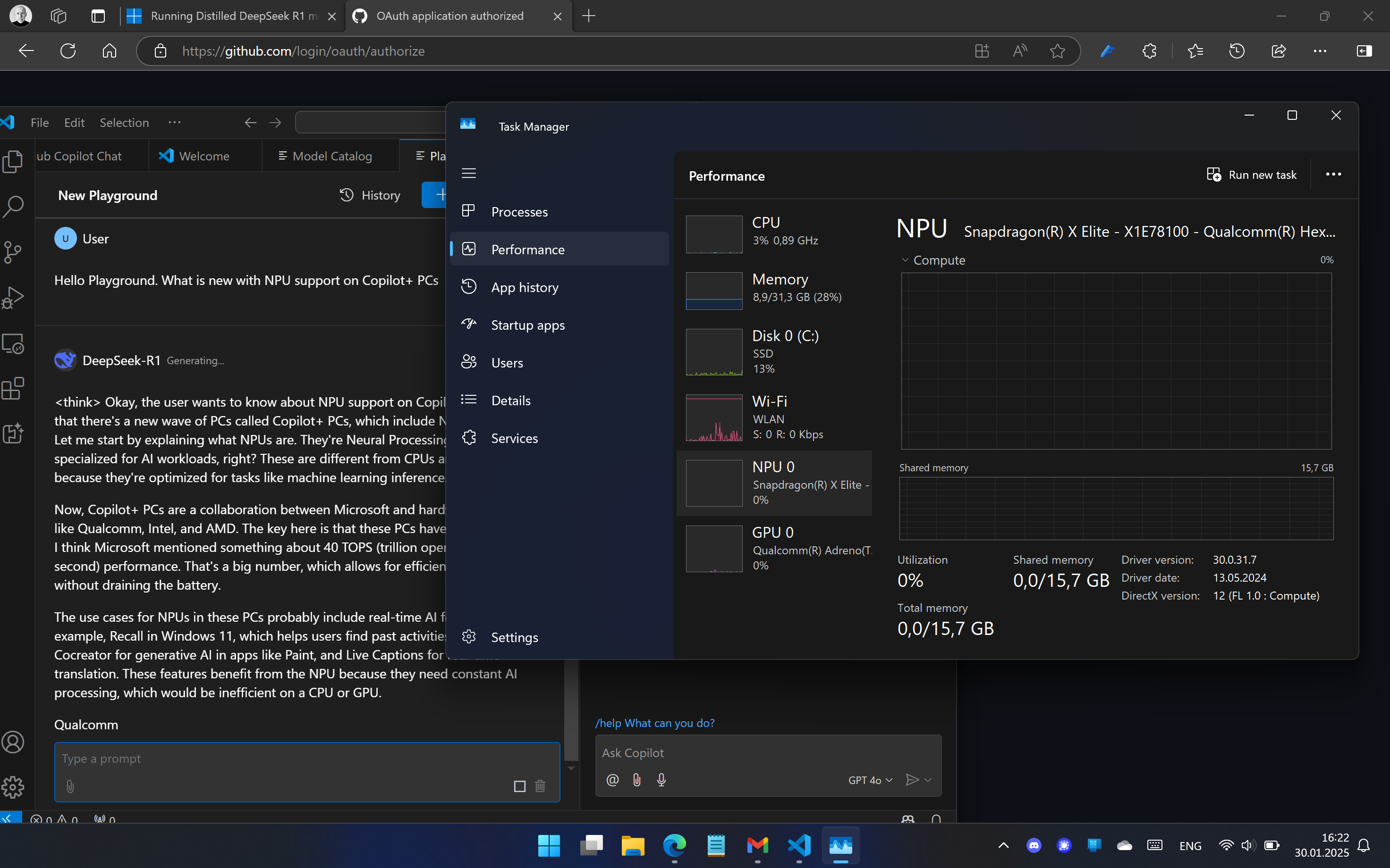 AI is moving closer to the edge, and Copilot+ PCs are leading the way. With the availability of cloud hosted DeepSeek R1 available on Azure AI Foundry, we’re bringing NPU-optimized versions of DeepSeek-R1 directly to Copilot+ PCs, starting with Qualcomm Snapdragon X first, followed by Intel Core Ultra 200V and others. The first release, DeepSeek-R1-Distill-Qwen-1.5B (Source), will be available in AI Toolkit, with the 7B (Source) and 14B (Source) variants arriving soon. These optimized models let developers build and deploy AI-powered applications that run efficiently on-device, taking full advantage of the powerful NPUs in Copilot+ PCs.