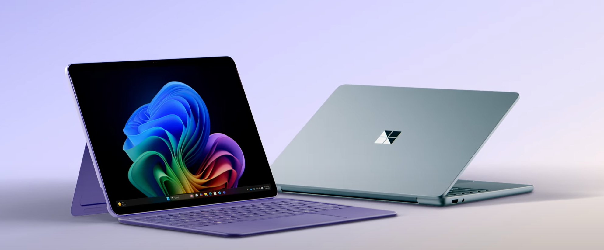Der Laptop ist vor allem kleiner. Beide haben nur den Snapdragon X Plus (8 Kerne) statt des X Elite mit 12 und der magnetische Anschluss ist weggefallen. Man kann auch die SSD nicht mehr so einfach entfernen. Die Frontkamera schrumpft beim Pro von 1440p auf 1080p. Beim Laptop fällt die Hello-Kamera weg und wird durch einen Fingerabdrucksensor abgelöst.