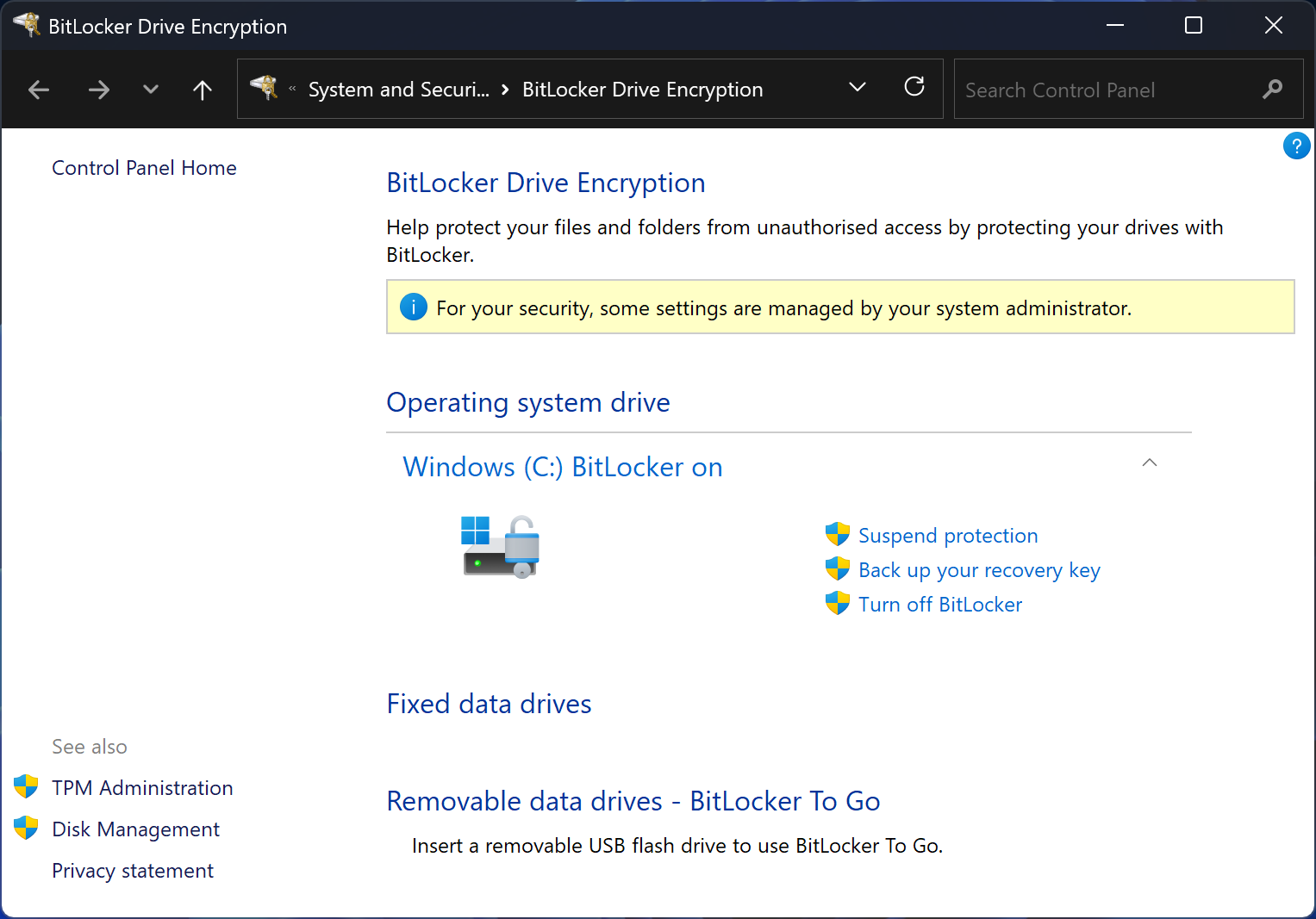 Ich hatte diese Woche Spaß mit Bitlocker. Heute habe ich dann mal aufgeräumt. Jeden PC angeschmissen, die Bitlocker-Verwaltung angeworfen, Status geprüft, Recovery Key ausgedruckt und im Microsoft-Konto gespeichert. Dabei habe ich ein paar ungewöhnliche Sachen festgestellt: