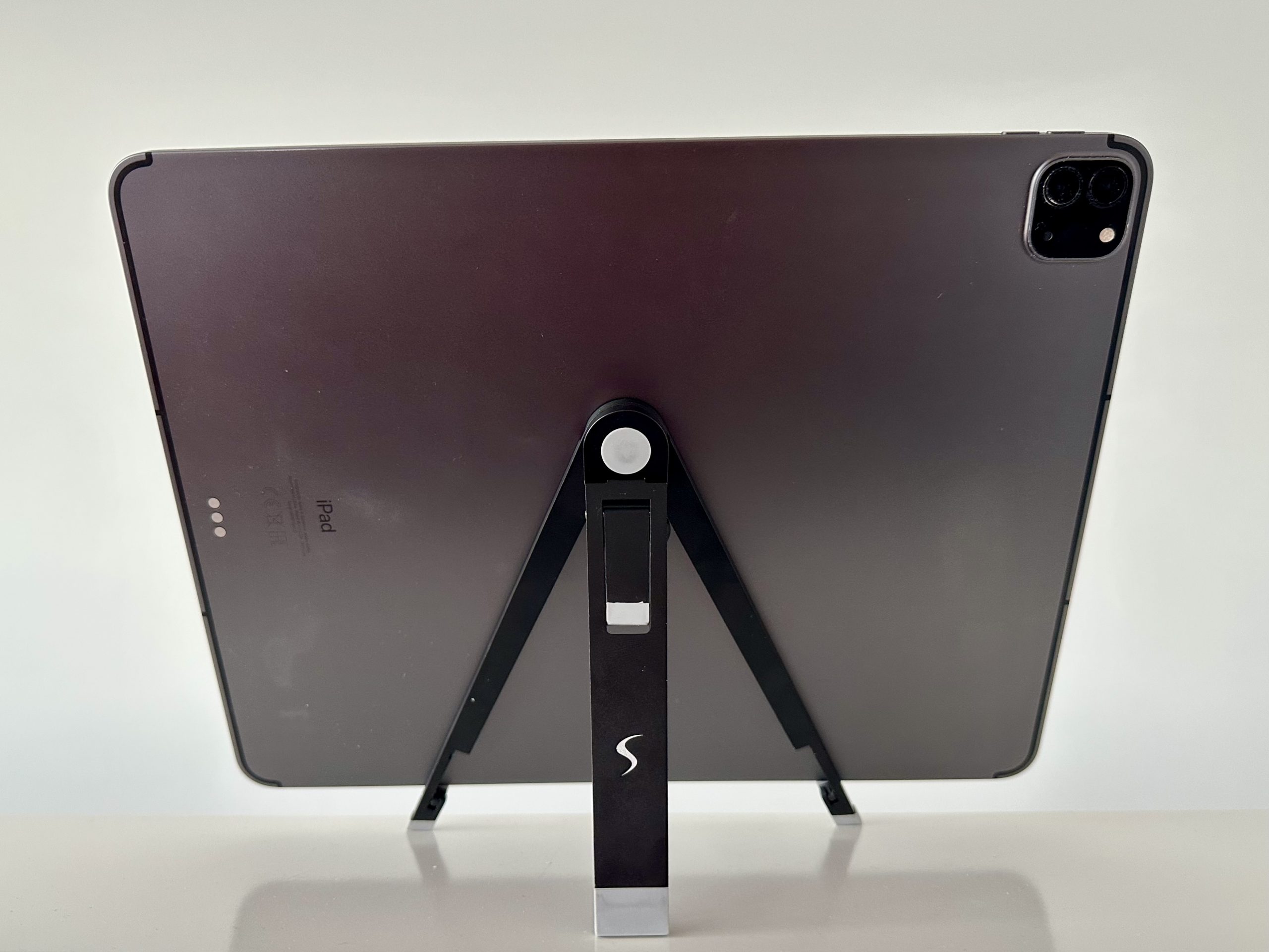 Ursprünglich wurde das Design für ein 9,7″ iPad entwickelt, aber selbst ein 16 Zoll großes ThinkPad Fold lässt sich damit aufstellen.