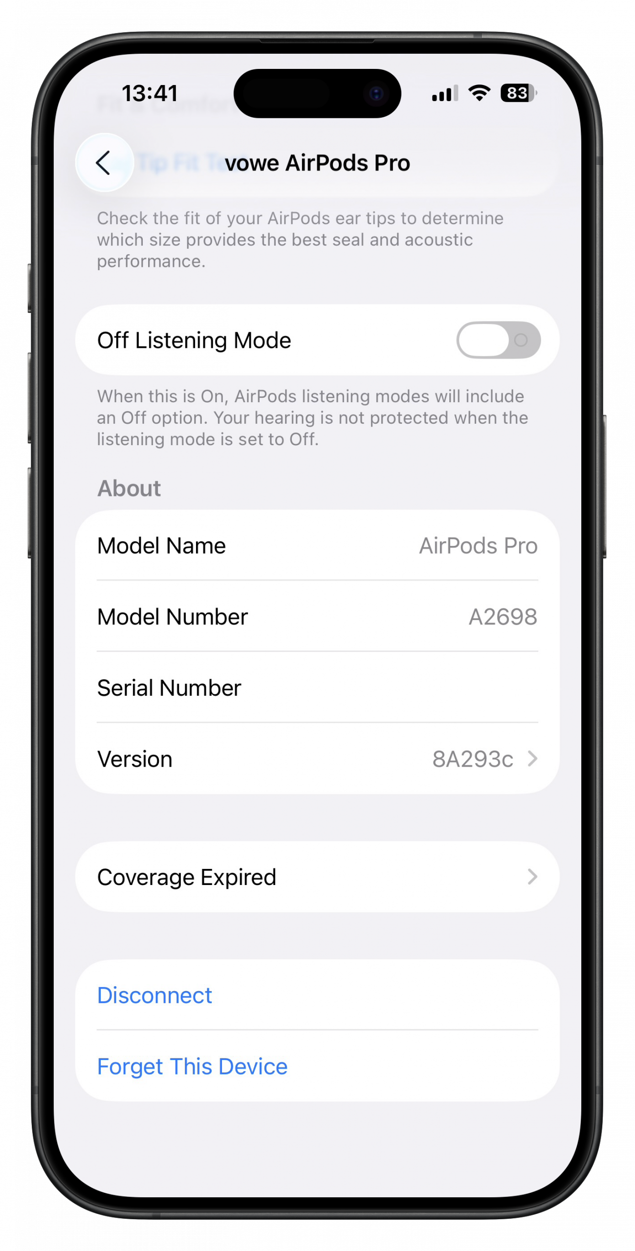 Wenn die AirPods mit dem iPhone verbunden sind, findet man einen neuen Eintrag in den iPhone-Einstellungen. Ganz unten sieht man dort die Versionsnummer. Bei iOS 18 sollte bei neueren iPhones dort eine Versionsnummer stehen, die mit 7 beginnt. Das sind die AirPods 4 und die AirPods Pro 2. Ältere AirPods, also die AirPods 3, die AirPods Pro und die AirPods Max haben eine Version 6.