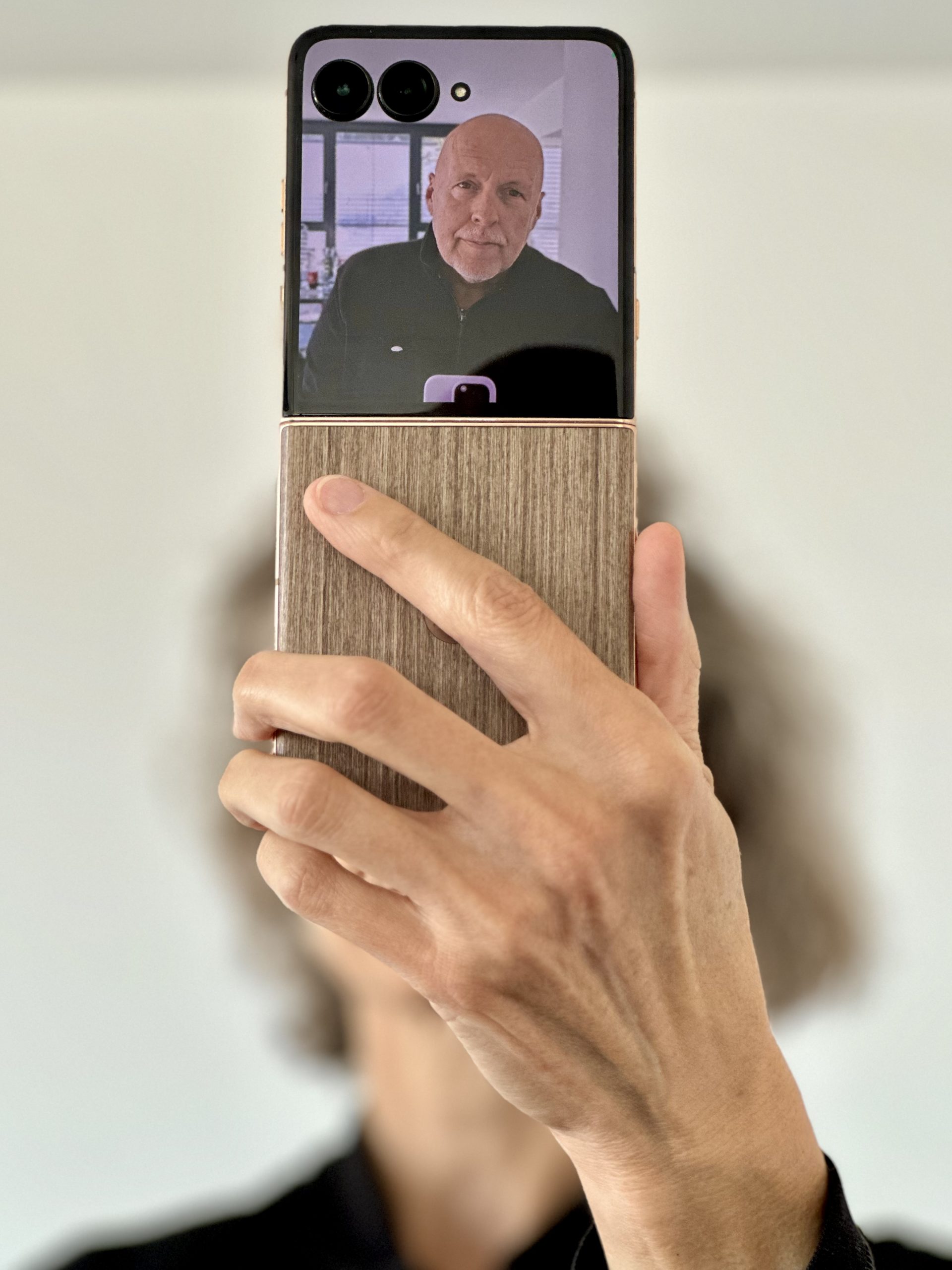 Das externe Display des Moto Razr ist sehr nützlich, wenn man Menschen fotografiert. Als Selfie würde ich das Gerät einfach zugeklappt lassen. Klappt man es auf, dann hat man zwei Sucherbilder: Eins innen, eins außen. So sieht man sich selbst, wenn man fotografiert wird.
