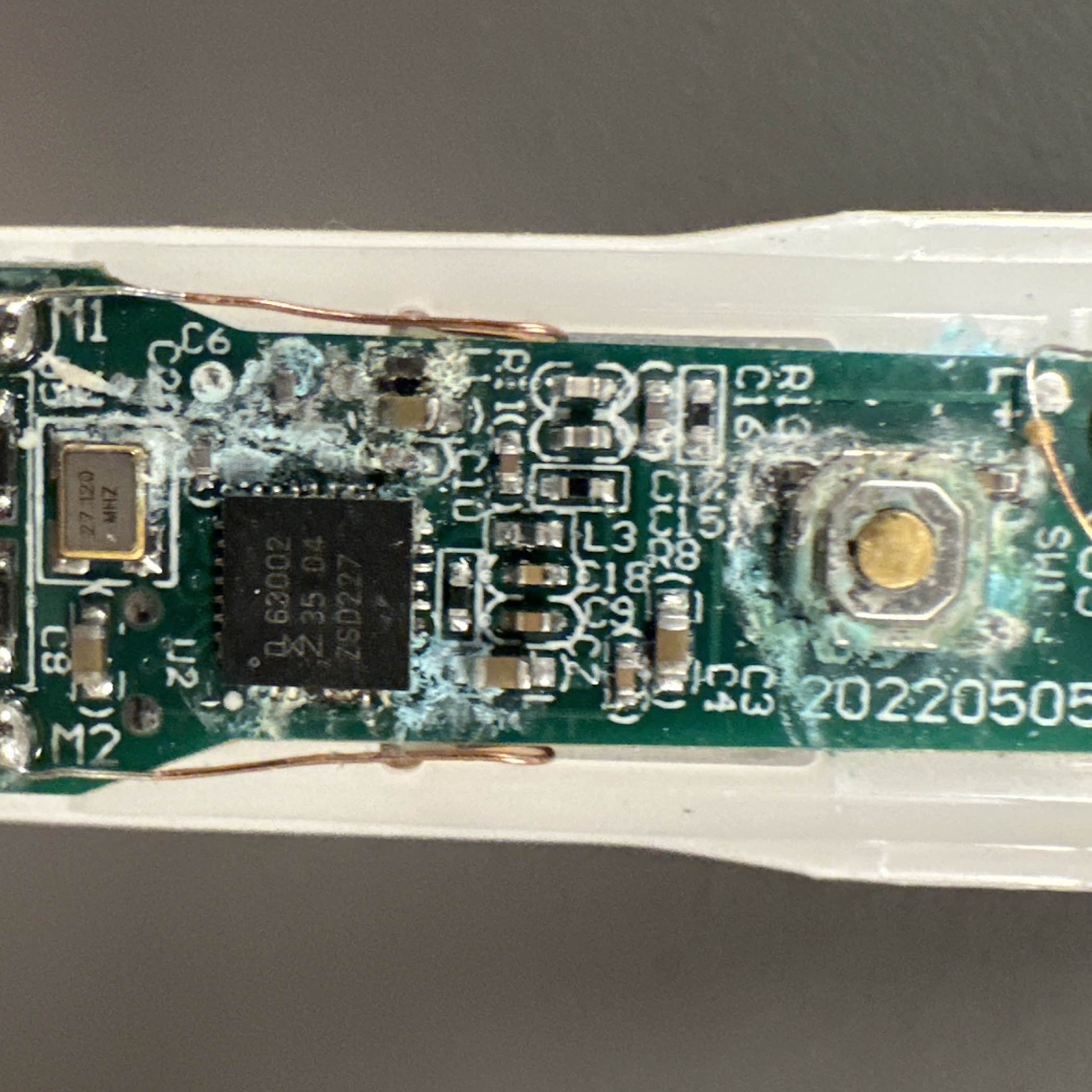 Das ist das Innenleben einer vermeintlich kaputten Philips Sonicare Zahnbürste. Man erkennt auf einen Blick, was passiert ist: Wasser und damit Zahnpasta sind in das Innere gelangt. Diese Zahnbürste ließ sich mit Isopropanol reinigen und geht jetzt wieder.