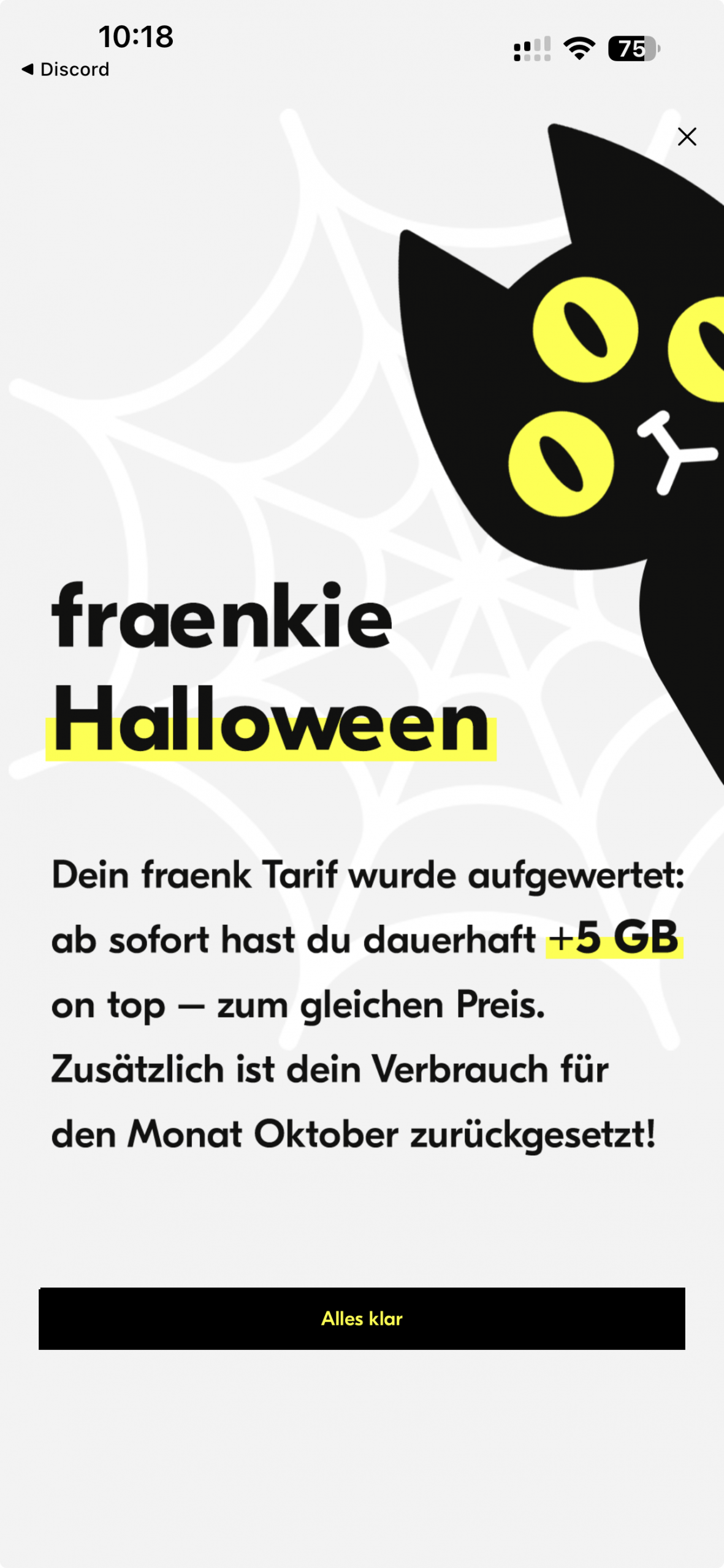 Du hast mich auf Fraenk aufmerksam gemacht; daraufhin bin ich gewechselt und nach kurzer Karenzzeit habe ich die ganze Familie mitgezogen. Ich freue mich jedesmal über die Gesichter der Kinder, wenn es solche Datenaktionen gibt. Die brauchen ihr Volumen fast (nie mehr) auf:-)
