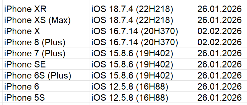 iPhone 11 und neuer laufen mit iOS 26. Aber auch die älteren iPhones bis runter zum iPhone 5S bekommen ein Update mit aktualisierten Zertifikaten. Das gilt auch für iPads mit diesen Software-Versionen.