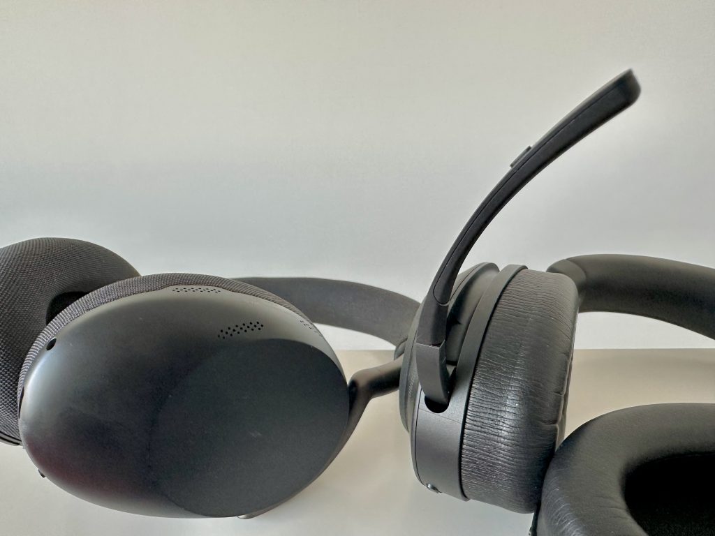 Man muss das mal mit zwei anderen Headsets ohne Mikrofonbügel vergleichen: EPOS Adapt 660 und Apple AirPods Max, beides Spitzengeräte der jeweiligen Hersteller:
