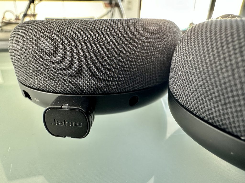 Wie man sieht, ist der Evolve3 viel schlanker und verzichtet auf einen Mikrofonarm. Das gehört eigentlich zum Evangelium der Konferenz-Headsets und ist doch äußerst unbeliebt, weil man an Call Center Agents denkt, wenn man sich mit diesen Bügeln vor dem Gesicht sieht.