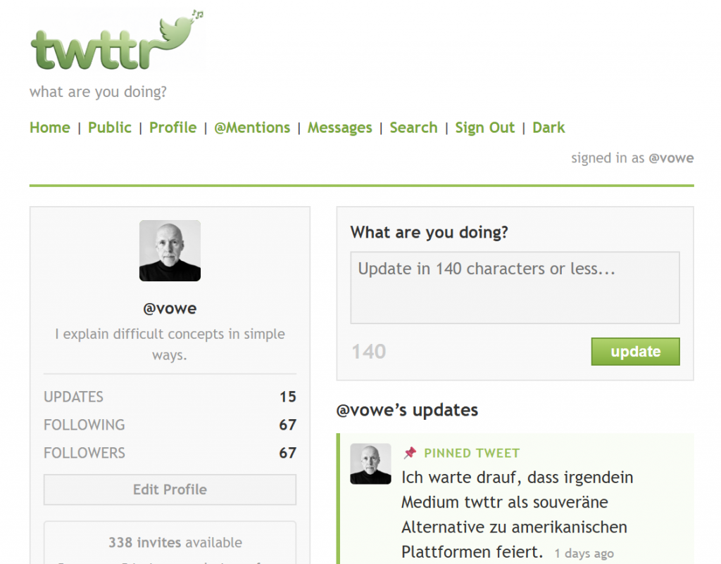 Geplant hatte Jan Kus twttr als einen sehr großen Aprilscherz. Und dann ging die Post ab. Das ist nicht nur eine Kopie des ursprünglichen Twitter, sondern es sind auch die gleichen Leute da.