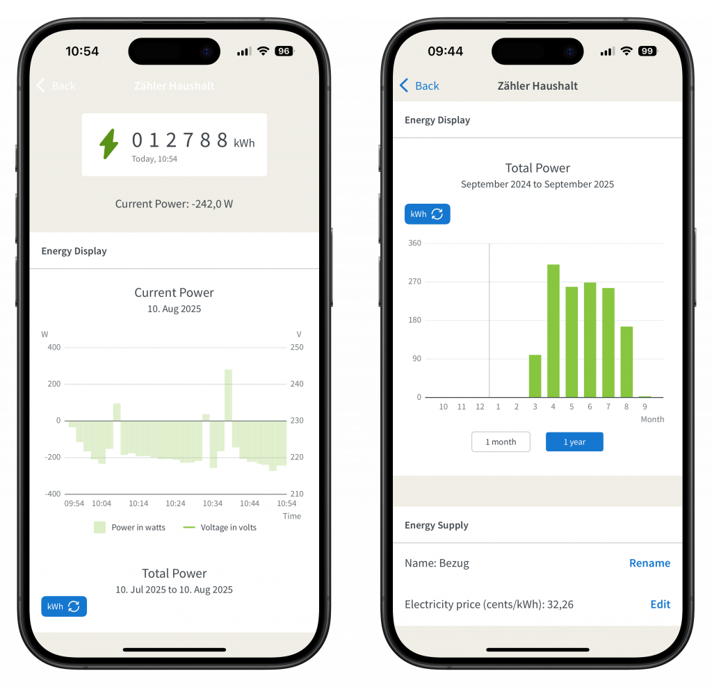 Die wichtigste Frage will ich vorab beantworten. Lohnt sich das? Ja, aber nur wenig. Im März habe ich auf unseren Bezugszählern Messköpfe installiert und von der Fritzbox Daten erfassen lassen. Aus denen lässt sich ablesen, wieviel weniger Strom wir eingekauft haben.
