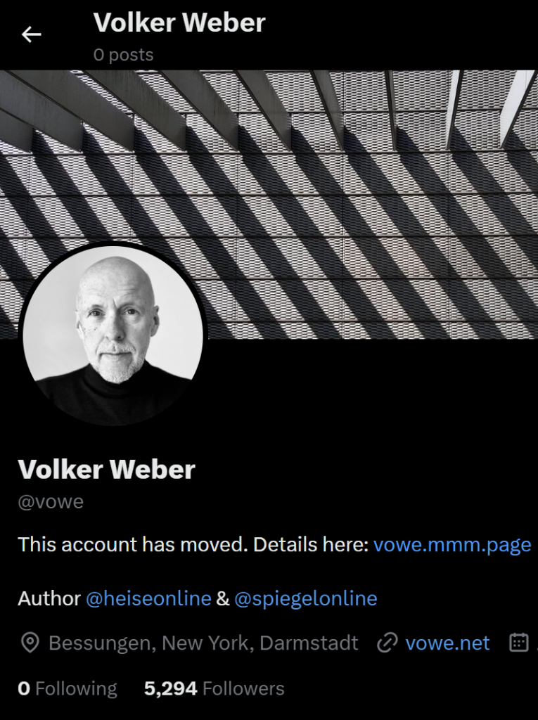 Strangely enough, this retired account still has 5294 followers, and the number keeps falling. As of today, 5294 also happens to be the number of followers I have on Mastodon, in the Fediverse.